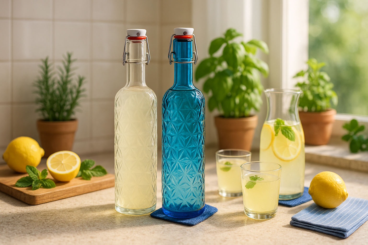 Η σειρά «Oriente» συνδυάζει καλλιτεχνική αισθητική με λειτουργική τελειότητα. Εμπνευσμένη από ανατολίτικα στοιχεία, αυτό το μπουκάλι ξεχωρίζει με το πολύγωνο σώμα του, που αιχμαλωτίζει τις αντανακλάσεις του φωτός με κομψό τρόπο και προσδίδει στο σχέδιο μια πολυτελή βάθος. Διατίθεται στα χρώματα διαφανές και γαλάζιο άζουρ, προσθέτοντας ιδιαίτερες πινελιές και φέρνοντας εξωτισμό και κομψότητα σε κάθε περιβάλλον. Το αεροστεγές κλείσιμο με μεταλλικό κλιπ εξασφαλίζει όχι μόνο ασφαλές σφράγισμα, αλλά υπογραμμίζει και την παραδοσιακή τεχνική που κρύβεται σε αυτό το μπουκάλι.
