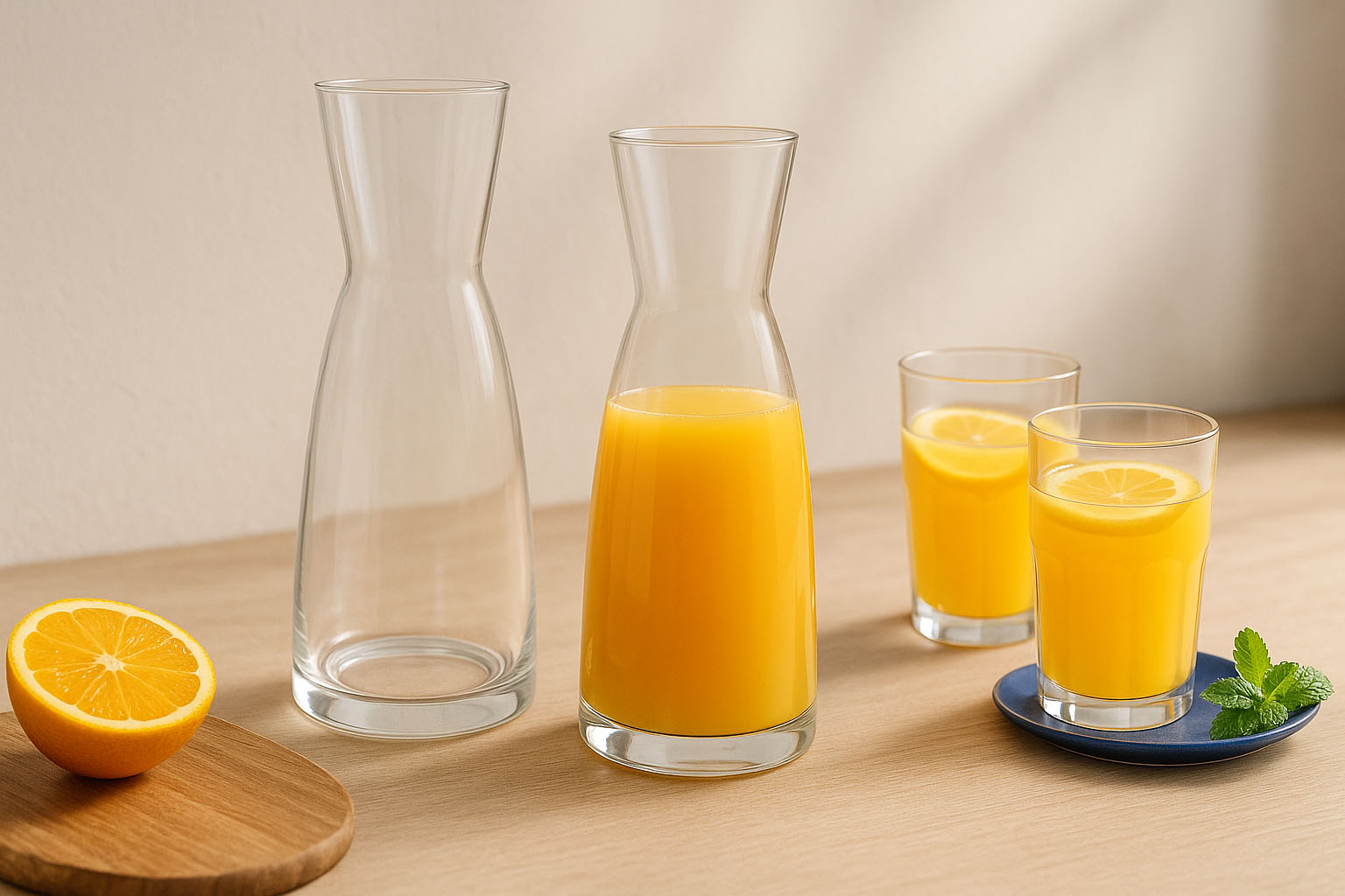 Ιδανική για παγωμένο νερό, δροσιστικούς χυμούς ή άλλα ποτά, η καράφα Aquaria προσφέρει μια κομψή παρουσίαση. Το εργονομικό της σχήμα εφαρμόζει άνετα στο χέρι, ενώ ο λεπτός λαιμός επιτρέπει ελεγχόμενο ράντισμα. Ένα πραγματικό design highlight που συνδυάζει απόλαυση και αισθητική με κομψό τρόπο.