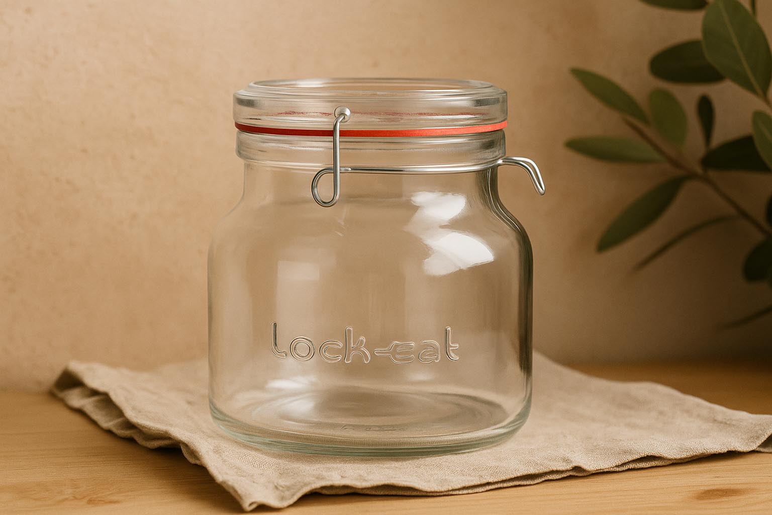 Η σειρά «Lock-Eat» συνδυάζει υψηλή ποιότητα κατασκευής με σύγχρονο, λειτουργικό σχεδιασμό. Κατασκευασμένα από την ιταλική παραδοσιακή εταιρεία Bormioli Rocco, αυτά τα ελαφρώς φουσκωτά βάζα με μεταλλικό κλιπ εντυπωσιάζουν με το κομψό τους σχήμα και την πρακτική τους χρήση. Με μεγάλο όγκο από 1500 έως 2000 ml, είναι ιδανικά για την αποθήκευση μεγαλύτερων ποσοτήτων. Τα καινοτόμα, αφαιρούμενα ανοξείδωτα κλιπ επιτρέπουν εύκολο άνοιγμα, γέμισμα και κλείσιμο των βάζων. Το γυάλινο καπάκι μπορεί να αφαιρεθεί εύκολα κατά το σερβίρισμα ή τη μερίδα και να επανατοποθετηθεί για ασφαλή αποθήκευση. Χωρίς πλαστικό και πλήρως επαναχρησιμοποιήσιμα, τα βάζα «Lock-Eat» αντιπροσωπεύουν τη βιωσιμότητα και την πολυλειτουργικότητα.