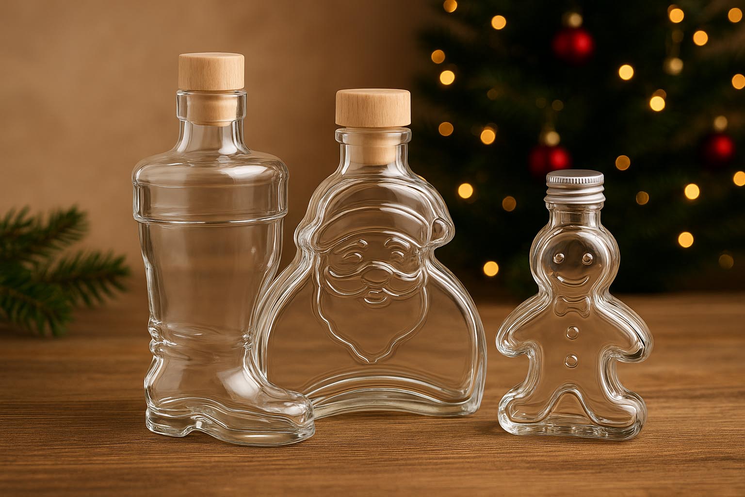 Τα ποικίλα ειδικά μπουκάλια μας, όπως τα "Eva" και "Adam", το «Γουρουνάκι της τύχης», το "Έλατο" και ο «Άνθρωπος με μελομακάρονο», ενσαρκώνουν διαχρονική κομψότητα και θέτουν πρότυπα στην ποιότητα και το σχέδιο. Κάθε μπουκάλι ξεχωρίζει με ένα χαρακτηριστικό, συχνά προσεκτικά σχεδιασμένο μοτίβο και μια υψηλής ποιότητας κατασκευή, που εντυπωσιάζει τόσο επαγγελματίες χρήστες όσο και ιδιώτες με αισθητική. Οι δοχεία διατίθενται σε διάφορα μεγέθη από 40 ml έως 500 ml και προσφέρουν με φελλό, καπάκι PP ή κλιπ μια κομψή λύση για την ασφαλή και αεροστεγή αποθήκευση αποσταγμάτων, λικέρ και άλλων ποτών.