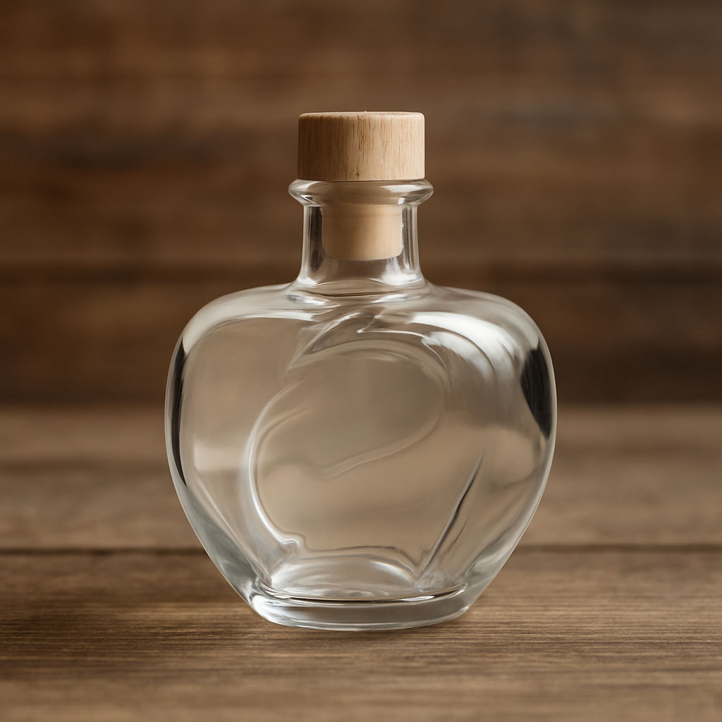 Το μπουκάλι με σχέδιο «Μήλο» εντυπωσιάζει με τον μοναδικό, σχήματος μήλου σχεδιασμό του και αποτελεί την ιδανική επιλογή για εκλεκτά φρουτένια αποστάγματα και λικέρ. Ο λεπτομερής σχεδιασμός του από υψηλής ποιότητας διαυγές γυαλί αναδεικνύει τον φυσικό χαρακτήρα του περιεχομένου και το καθιστά πραγματικό πόλο έλξης. Ο φελλός εξασφαλίζει μια κομψή και ασφαλή σφράγιση, ενώ το αρμονικό σχήμα τονίζει την αξία του προϊόντος.