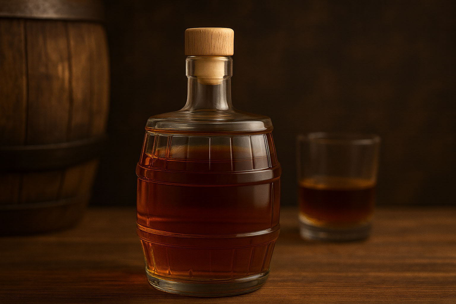 Η σειρά «Βαρέλι» συνδυάζει την επιμέλεια της χειροτεχνίας με την λειτουργική τελειότητα. Εμπνευσμένη από κλασικά ξύλινα βαρέλια, αυτό το μπουκάλι εντυπωσιάζει με μια λεπτομερή επιφανειακή διακόσμηση που προσδίδει στο περιεχόμενό του μια αυθεντική και υψηλής ποιότητας παρουσίαση. Κατασκευασμένο στην Ιταλία, ξεχωρίζει για την άριστη ποιότητα γυαλιού και την επιλογή μεταξύ διαφόρων στομίων – φελλού ή βιδωτού καπακιού (PP 18, PP 24, PP 28) – κατάλληλα για ατομικές ανάγκες. Με χωρητικότητα από 50 έως 500 ml, η σειρά «Βαρέλι» προσφέρει έναν κομψό τρόπο να αποθηκεύετε εκλεκτά ποτά με ασφάλεια και αισθητική αρτιότητα.