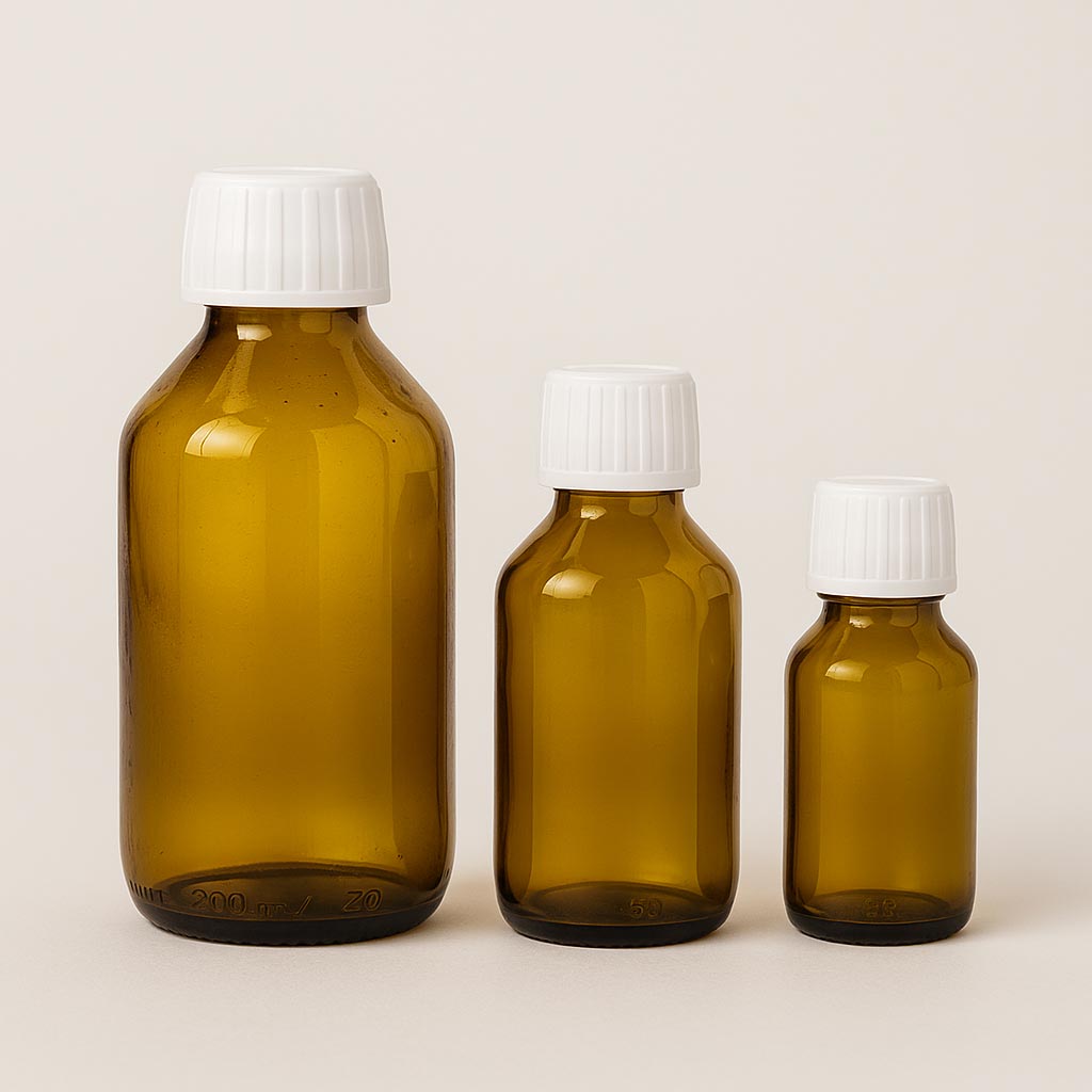 Το καφέ φιαλίδιο φαρμάκου συνδυάζει λειτουργική ασφάλεια με διαχρονικό σχεδιασμό και προσφέρει μια ιδανική λύση για φαρμακευτικά και καλλυντικά προϊόντα. Η στρογγυλή βάση του εξασφαλίζει κλασική εμφάνιση και καλή σταθερότητα, ενώ το ομοιόμορφα χρωματισμένο γυαλί παρέχει εξαιρετική προστασία από το φως και προστατεύει το περιεχόμενο από επιβλαβείς εξωτερικές επιδράσεις. Με όγκο από 50 έως 1000 ml, αυτό το φιαλίδιο είναι κατάλληλο για ποικίλες εφαρμογές. Ο τυποποιημένος λαιμός PP 28 επιτρέπει ασφαλές σφράγισμα και μπορεί να συνδυαστεί με καπάκια από τη συλλογή μας. Αυτό το υψηλής ποιότητας φιαλίδιο φαρμάκου αντιπροσωπεύει προστασία, ποιότητα και επαγγελματική παρουσίαση προϊόντος.